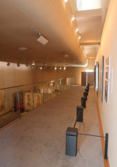 2階にある展示室の吹き抜けに面したギャラリーはトップサイドライトからの柔らかな光が心地よい空間。
