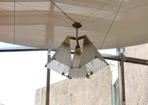 村野らしい拘りを感じさせる照明器具がワイヤーで支えられて宙に浮いていました。